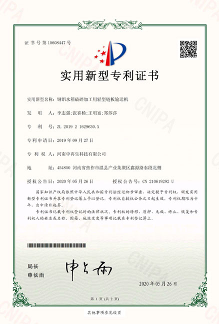 ZL201921629630X_铜铝水箱破碎加工用轻型链板输送机