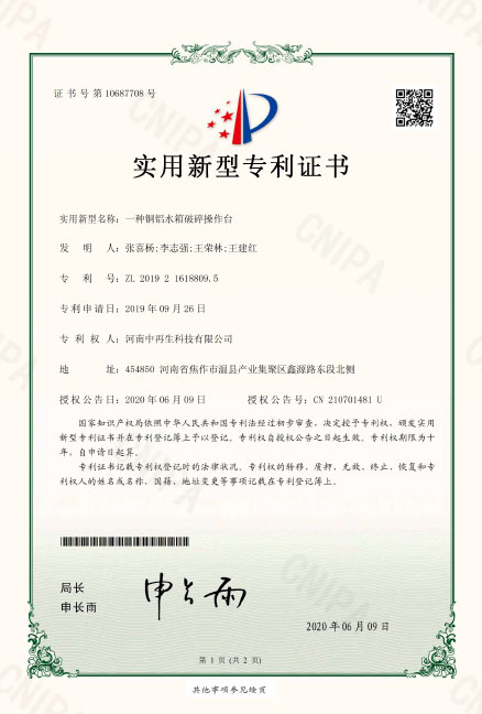 ZL2019216188095.一种铜铝水箱破碎操作台